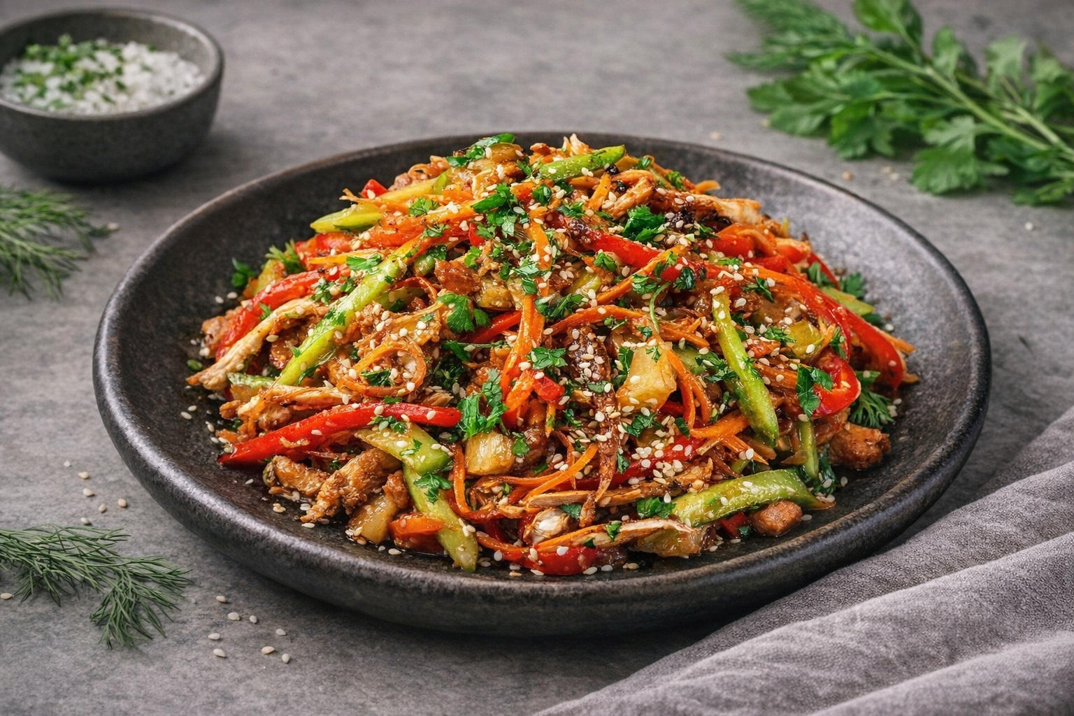 Приготовьте салат «Азиатский» прямо сейчас и наслаждайтесь ярким сочетанием вкусов Востока! Пусть каждый прием пищи приносит удовольствие и заряжает энергией на весь день.