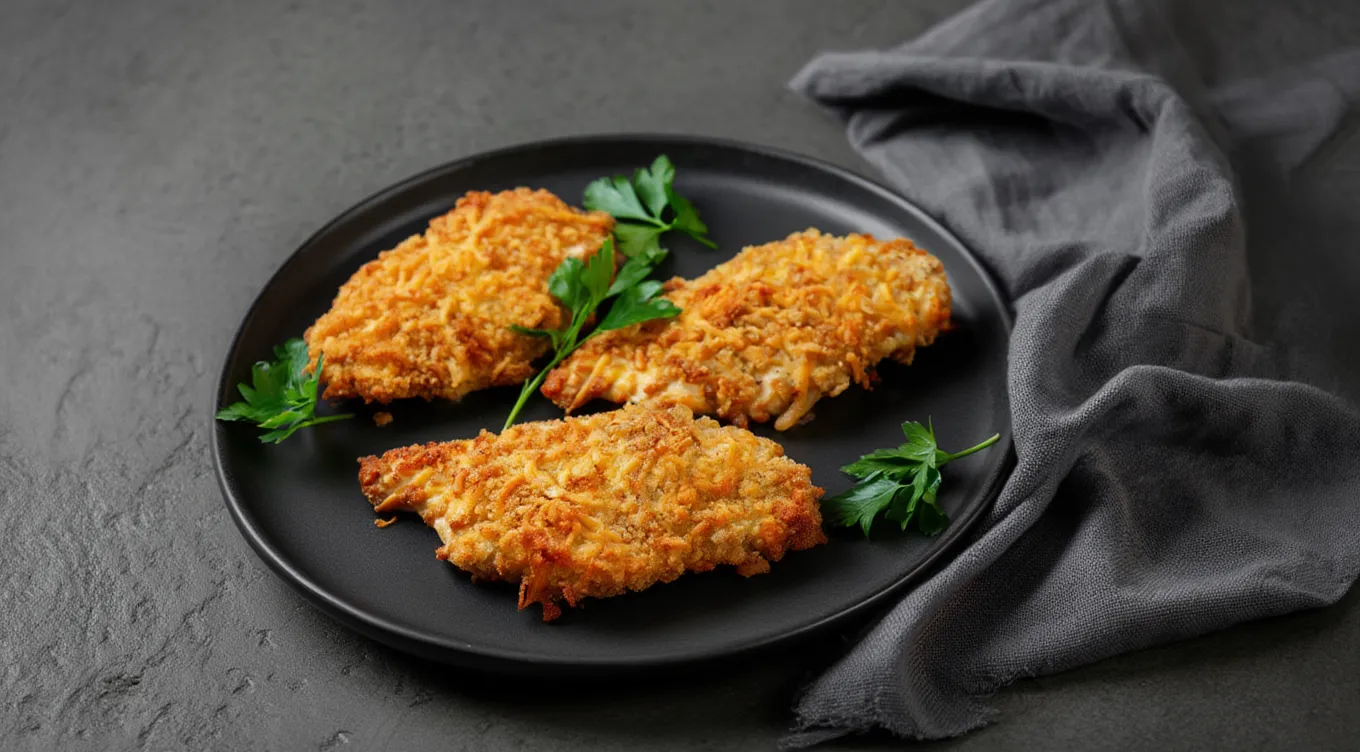 Филе куриное в сыре — нежнейшее мясо птицы, запечённое в золотистой панировке из сыра и яиц. Это блюдо сочетает в себе полезные свойства куриного филе и приятный сливочный вкус сыра, создавая идеальное сочетание вкуса и пользы.