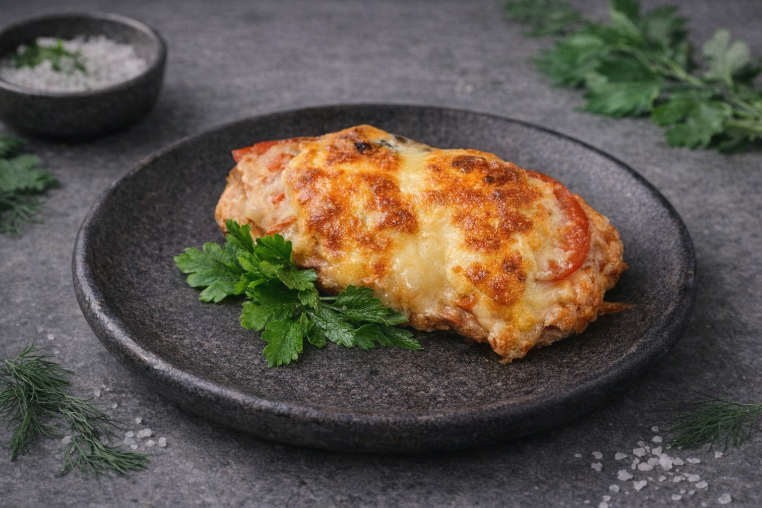 Филе по-французски — это аппетитное куриное филе, покрытое свежими томатами, тянущимся сыром и лёгким слоем майонеза. Нежная текстура мяса идеально дополняется сочностью томатов и ароматом расплавленного сыра, превращая простое блюдо в настоящее гастрономическое удовольствие.