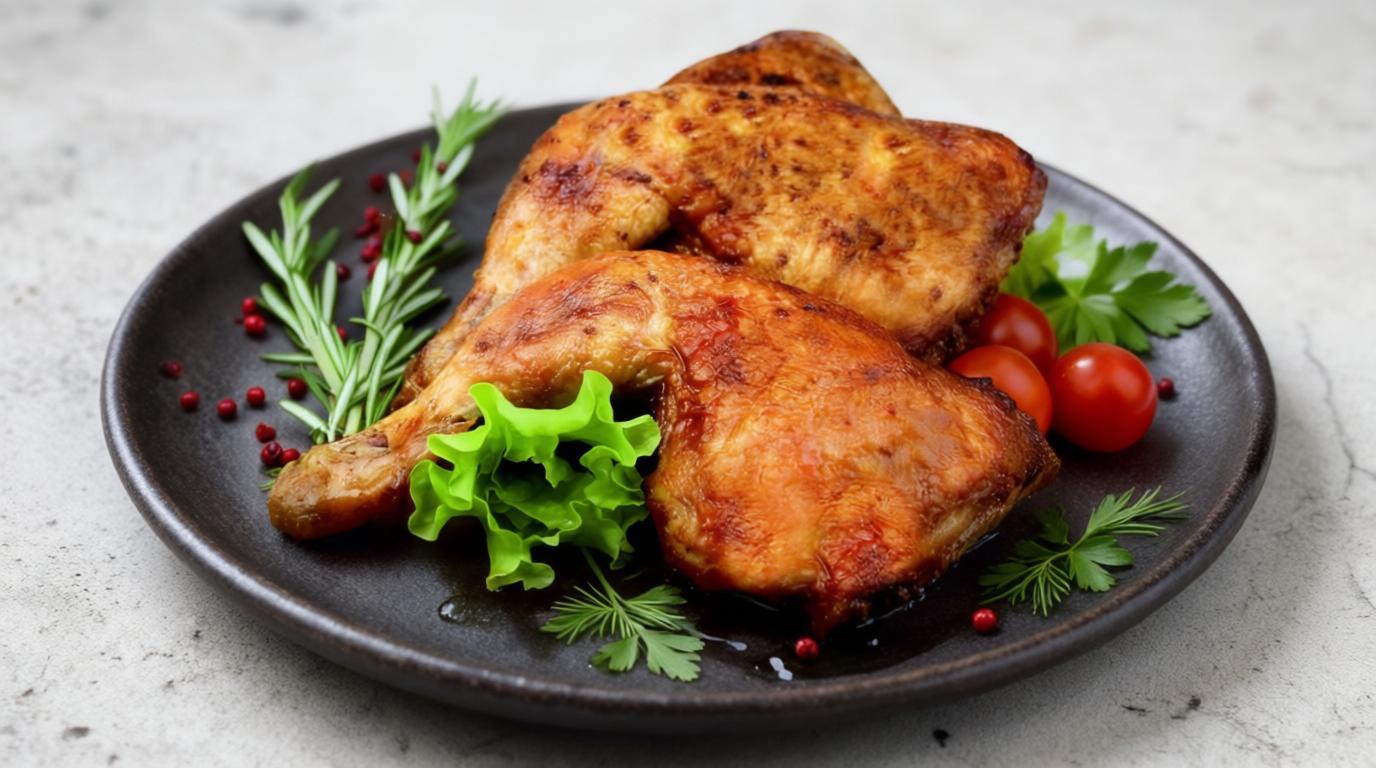 Жареные окорочка — это нежное куриное мясо, запечённое до золотистой корочки в ароматном маринаде со специями. Это отличный источник белка и полезных микроэлементов, придающих сил и энергии.
