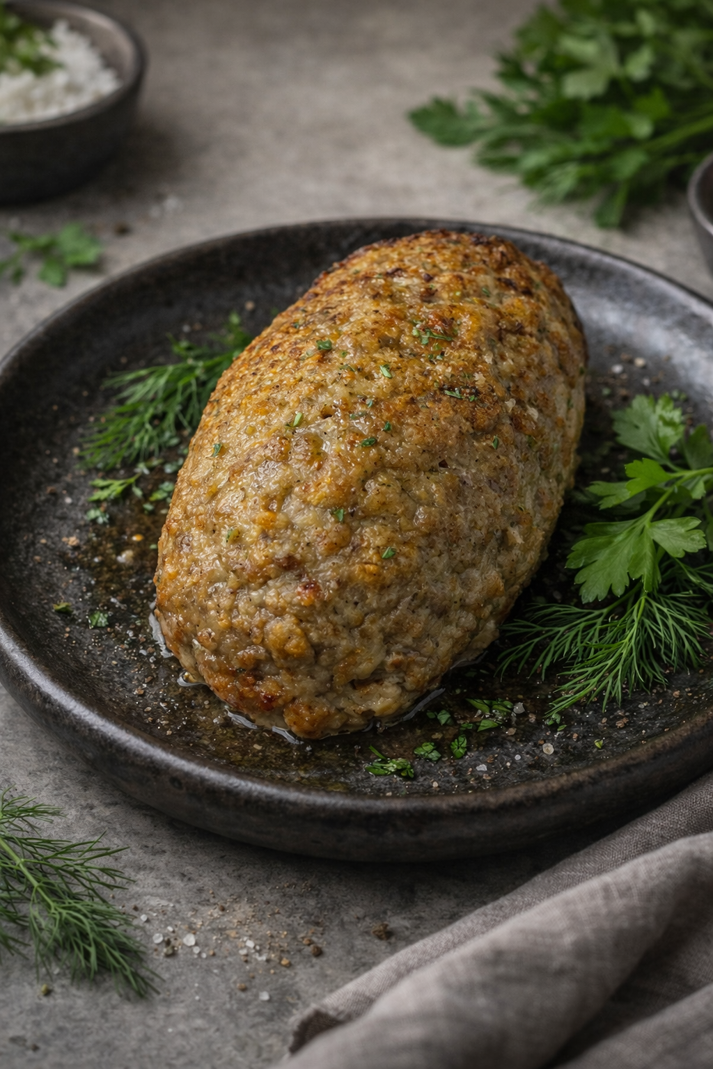 Рубленый куриный рулет — нежнейшее блюдо из свежего куриного фарша, обжаренного до хрустящей корочки и дополненного ароматом жареного лука и яйца. Это отличный источник белка и энергии, приготовленное с заботой о вашем здоровье.