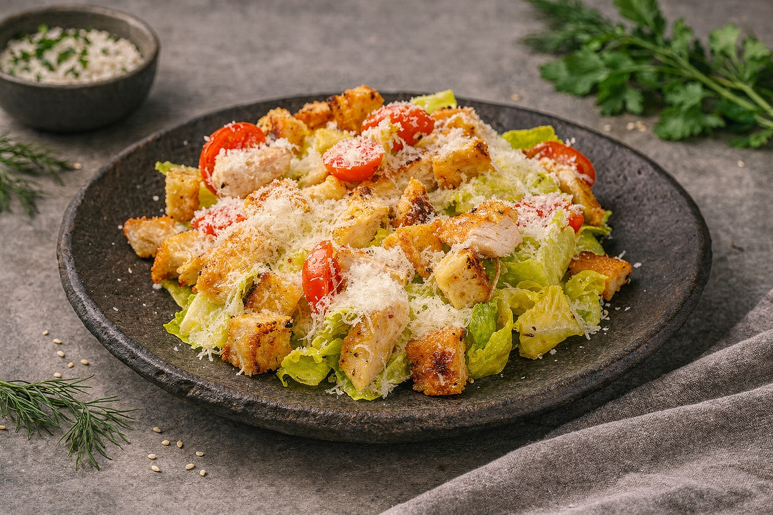 Идеален для тех, кто ценит традиционное качество и изысканный вкус. Попробовав однажды, вы захотите повторить снова! Закажите салат «Цезарь с курицей» прямо сейчас и наслаждайтесь любимым блюдом без хлопот.