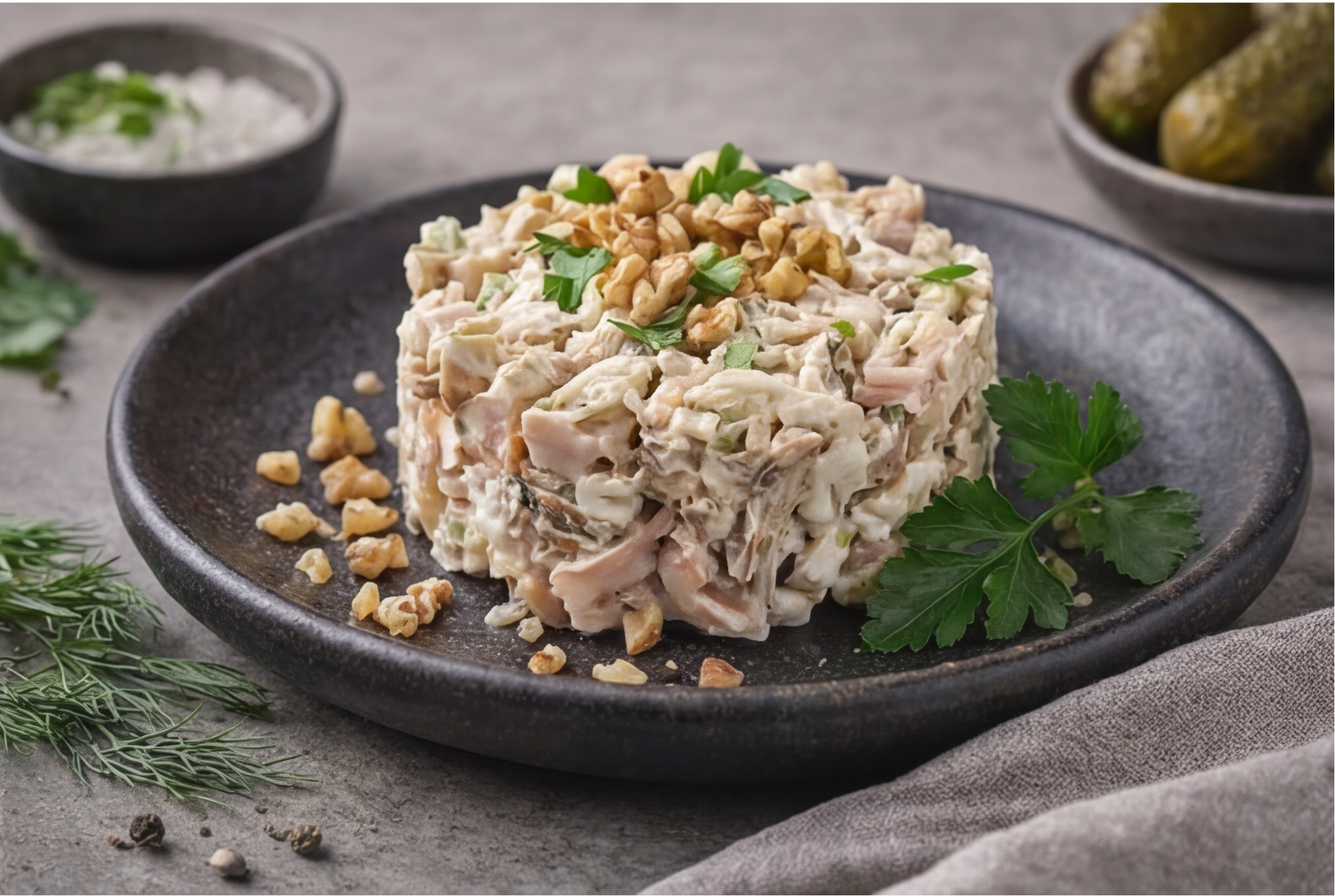 Идеален для тех, кто любит традиционные рецепты и хочет насладиться сытным блюдом. Закажите салат «Языковой» прямо сейчас и окунитесь в мир гастрономического удовольствия!